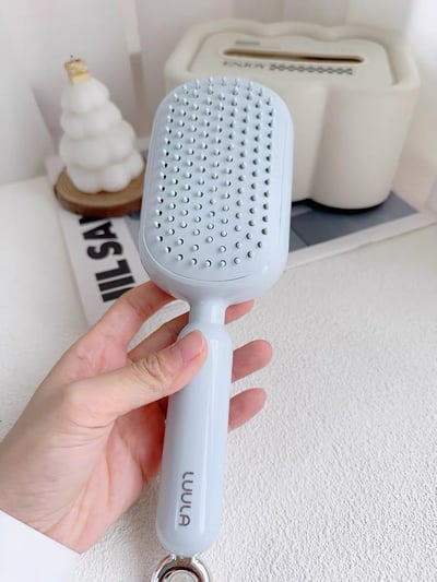 Tekan untuk mengangkat rambut dari bulu sikat secara instan — menjaga sikat tetap bersih dan higienis.